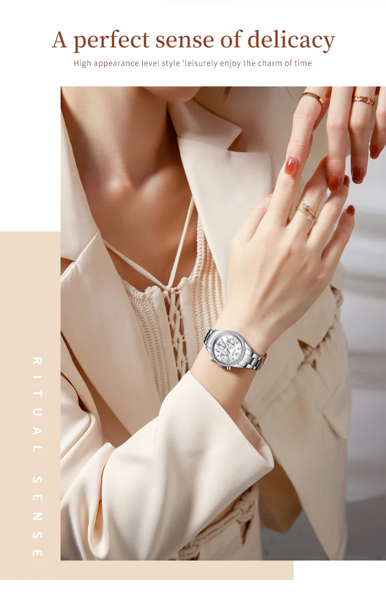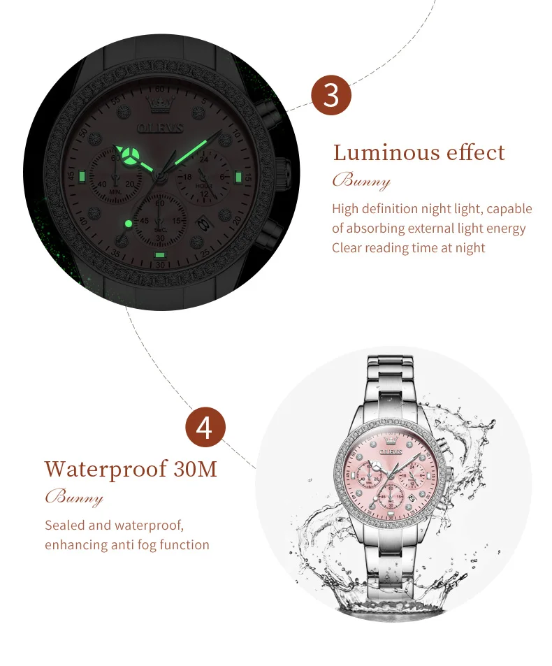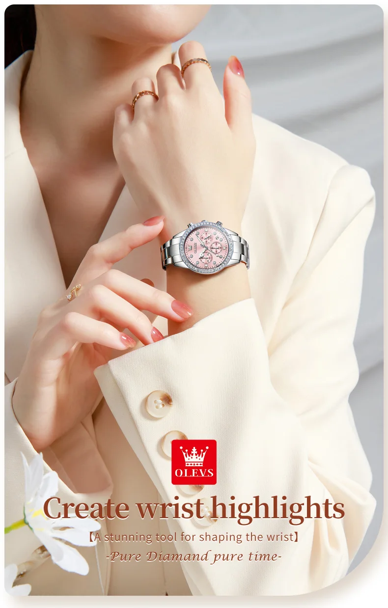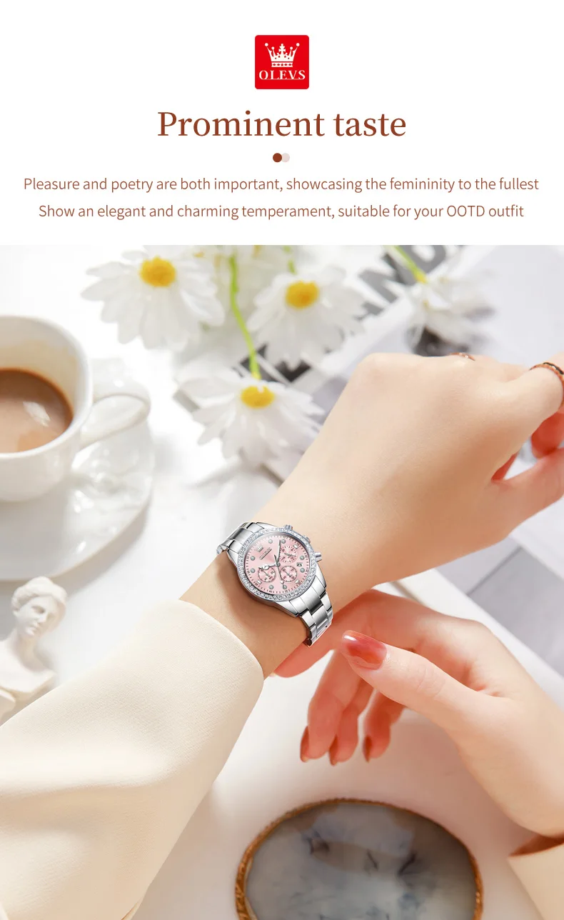 OLEVS luxury women's watch, elegant and modern, high-quality, original, multifunctional, waterproof, and quartz movement.